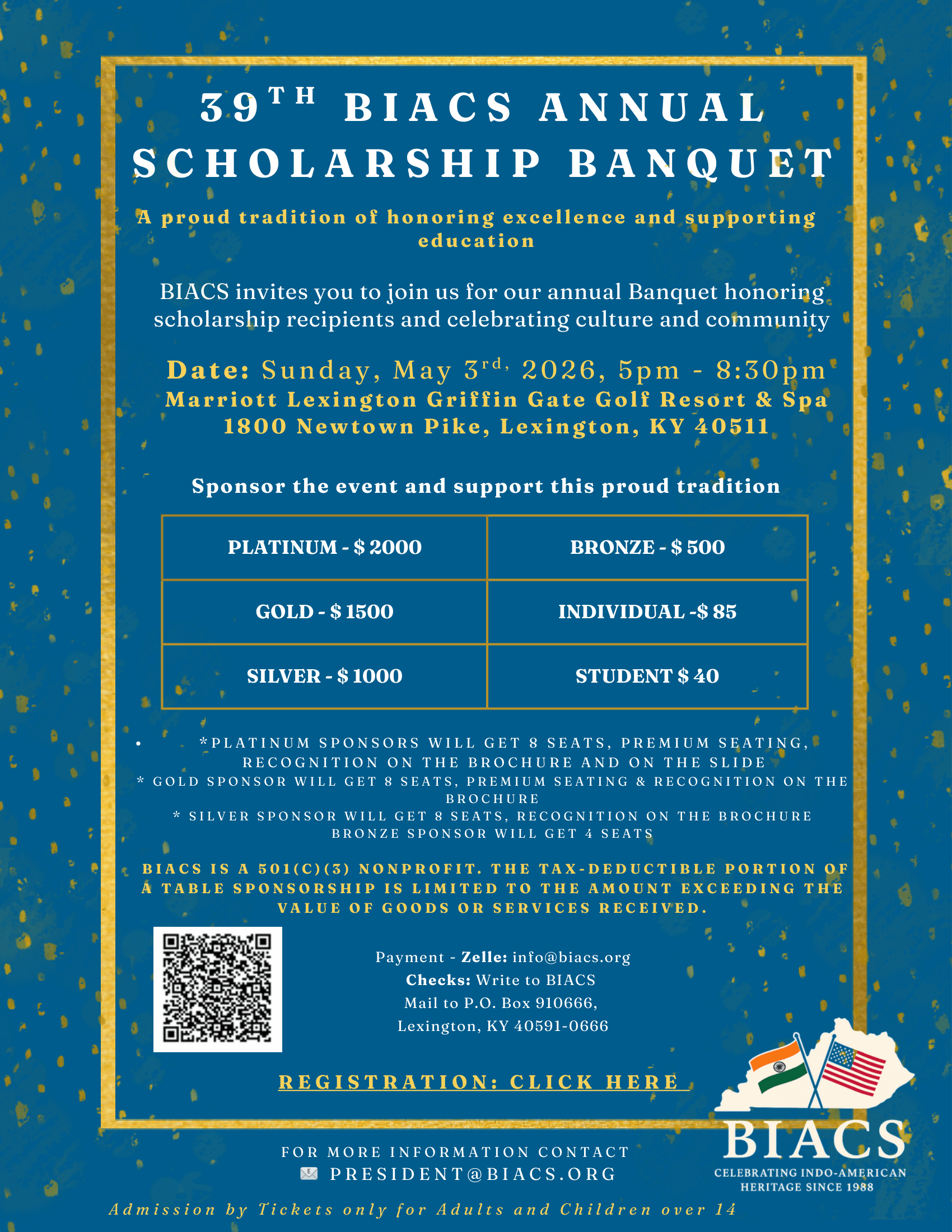 The 38th Annual Scholarship Banquet was held on Sunday, April 27th, 2025, at the Embassy Suites by Hilton. The keynote speaker for the event was Dr. Greg Feeney, President of Bluegrass Community and Technical College. He spoke about his extensive experience in workforce development and academic leadership and provided valuable insights for the young scholars. Ms. Amrita Bhaumik, a global HR leader shared her experiences and talked about how investing in building social capital from an early age helps in professional/personal success. With the gracious support from our donors, a total of 29 scholarships were given to deserving students from across Kentucky.