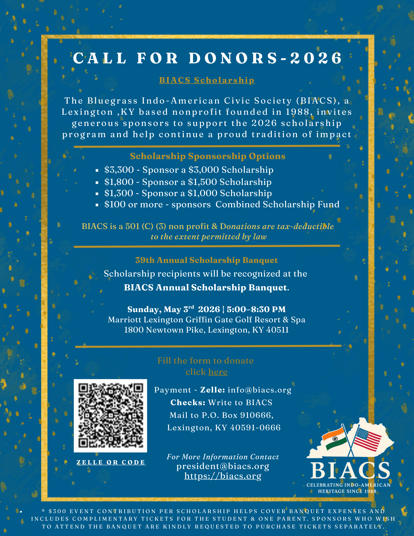 The 38th Annual Scholarship Banquet was held on Sunday, April 27th, 2025, at the Embassy Suites by Hilton. The keynote speaker for the event was Dr. Greg Feeney, President of Bluegrass Community and Technical College. He spoke about his extensive experience in workforce development and academic leadership and provided valuable insights for the young scholars. Ms. Amrita Bhaumik, a global HR leader shared her experiences and talked about how investing in building social capital from an early age helps in professional/personal success. With the gracious support from our donors, a total of 29 scholarships were given to deserving students from across Kentucky.